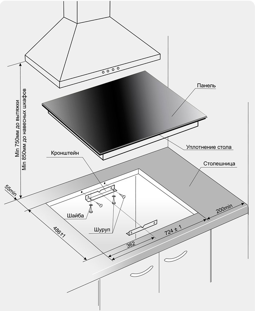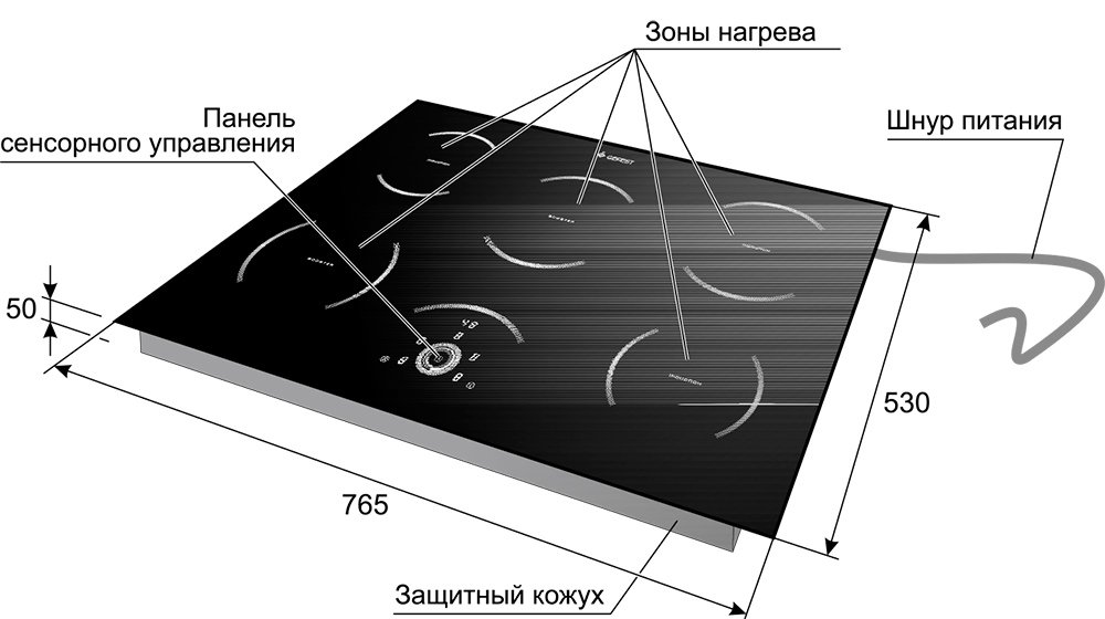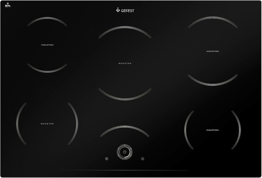 Электрическая варочная панель, тип конфорок индукционные, количество конфорок 5, материал поверхности стеклокерамика, управление сенсорное, защитное отключение, индикатор остаточного тепла, защита от детей, таймер , ширина встраивания 72.4 см.