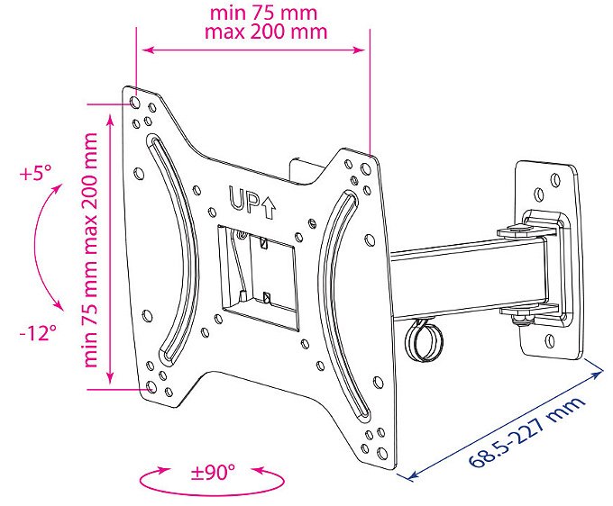 Для телевизора, установка: стена, Макс, диагональ: 42 ", Поворот , Наклон.