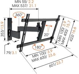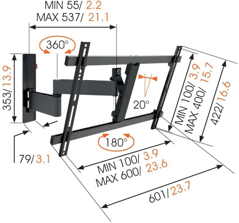 Для телевизора, установка: стена, Мин, диагональ: 40 ", Макс, диагональ: 65 ", Поворот , Наклон.