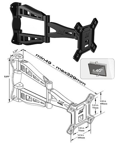 Для телевизора, установка: стена, Макс, диагональ: 27 ", Поворот , Наклон.