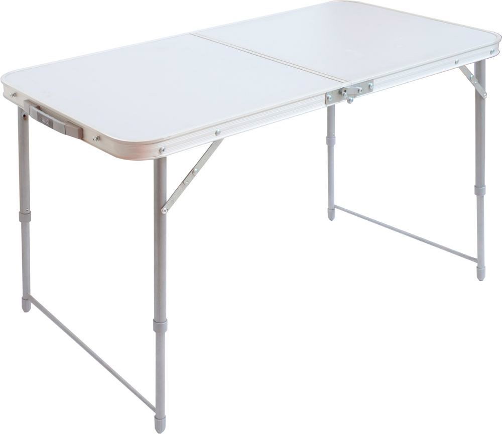 Складной туристический стол. Материал столешницы: МДФ, окантовка - алюминиевые профили. Материал ножек: сталь. 2 положения по высоте: 44.5 и 61 см. Допустимая распределенная нагрузка: 20 кг. Размеры столешницы: 100x50 см. Размеры в сложенном виде 50x50x7 см. Различные цветовые варианты.