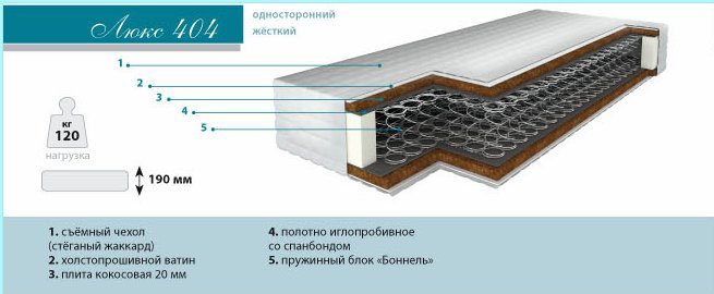 Зависимый пружинный блок, жесткость: жесткий, жесткий, 120 кг на место, высота 19 см.
