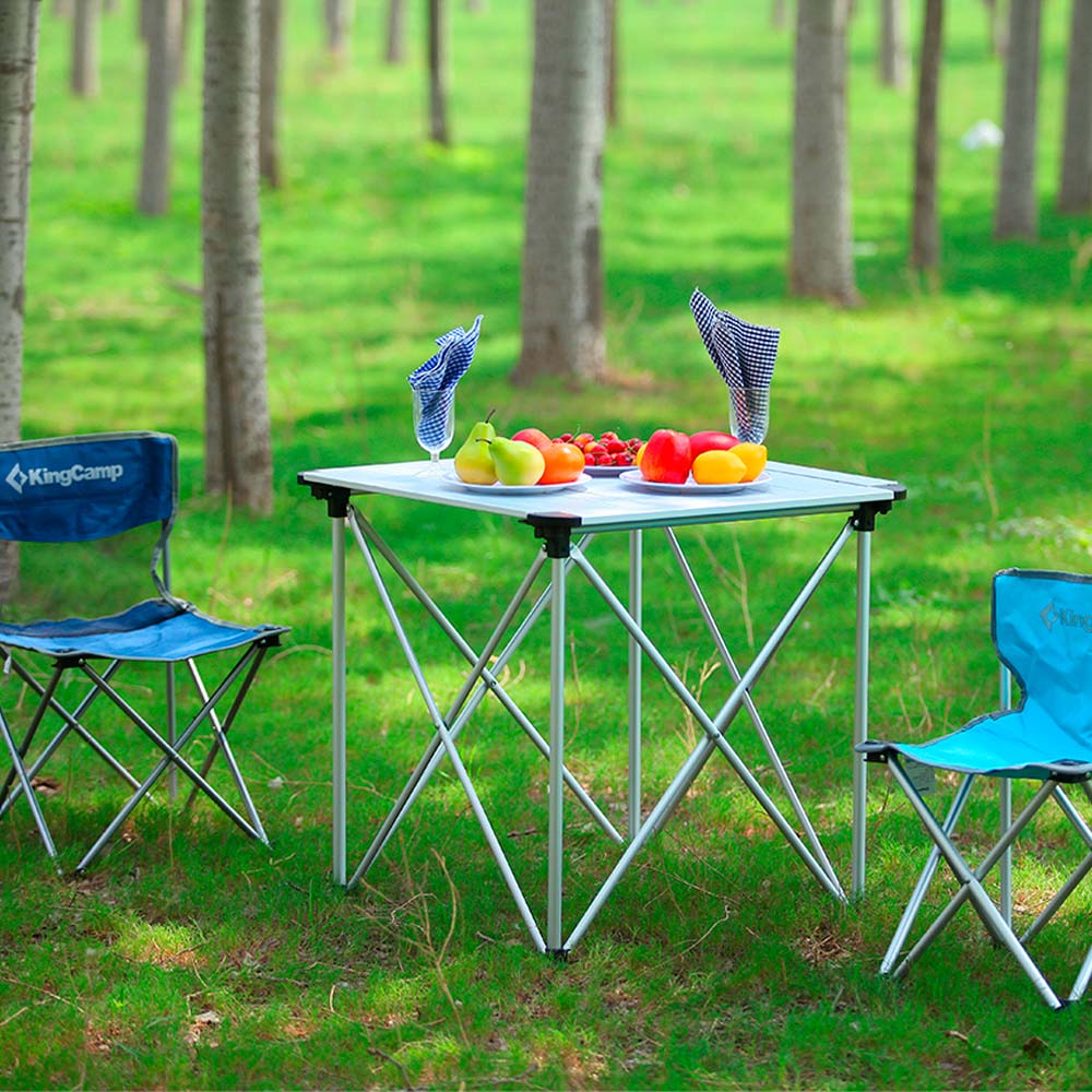 Стол кемпинговый складной. Вес: 4,6 кг. Размеры: 70х70х66 см. Материал: алюминий. Максимальный вес нагрузки: до 80 кг. Аксессуары: сумка для переноски.
