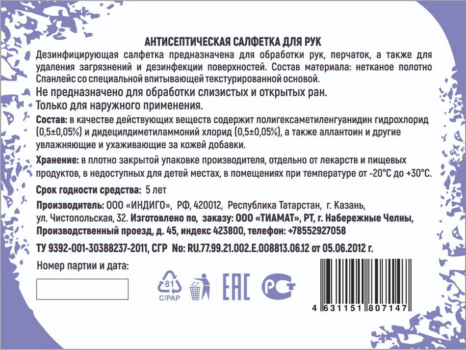 Салфетка антисептическая влажная для рук, блок 30 штук
