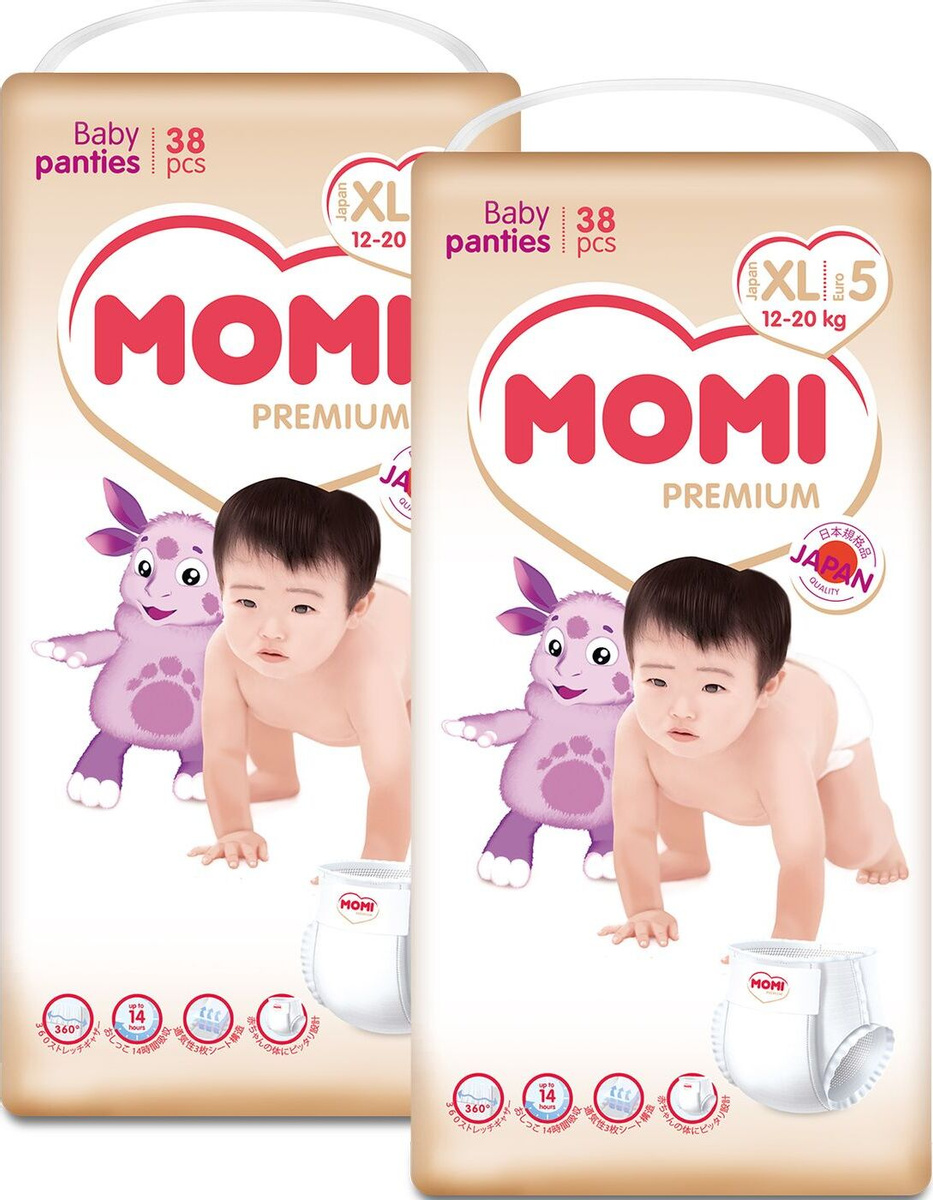 Подгузники-трусики Momi Premium, 12-20 кг, размер XL, 38 шт х 2 упаковки