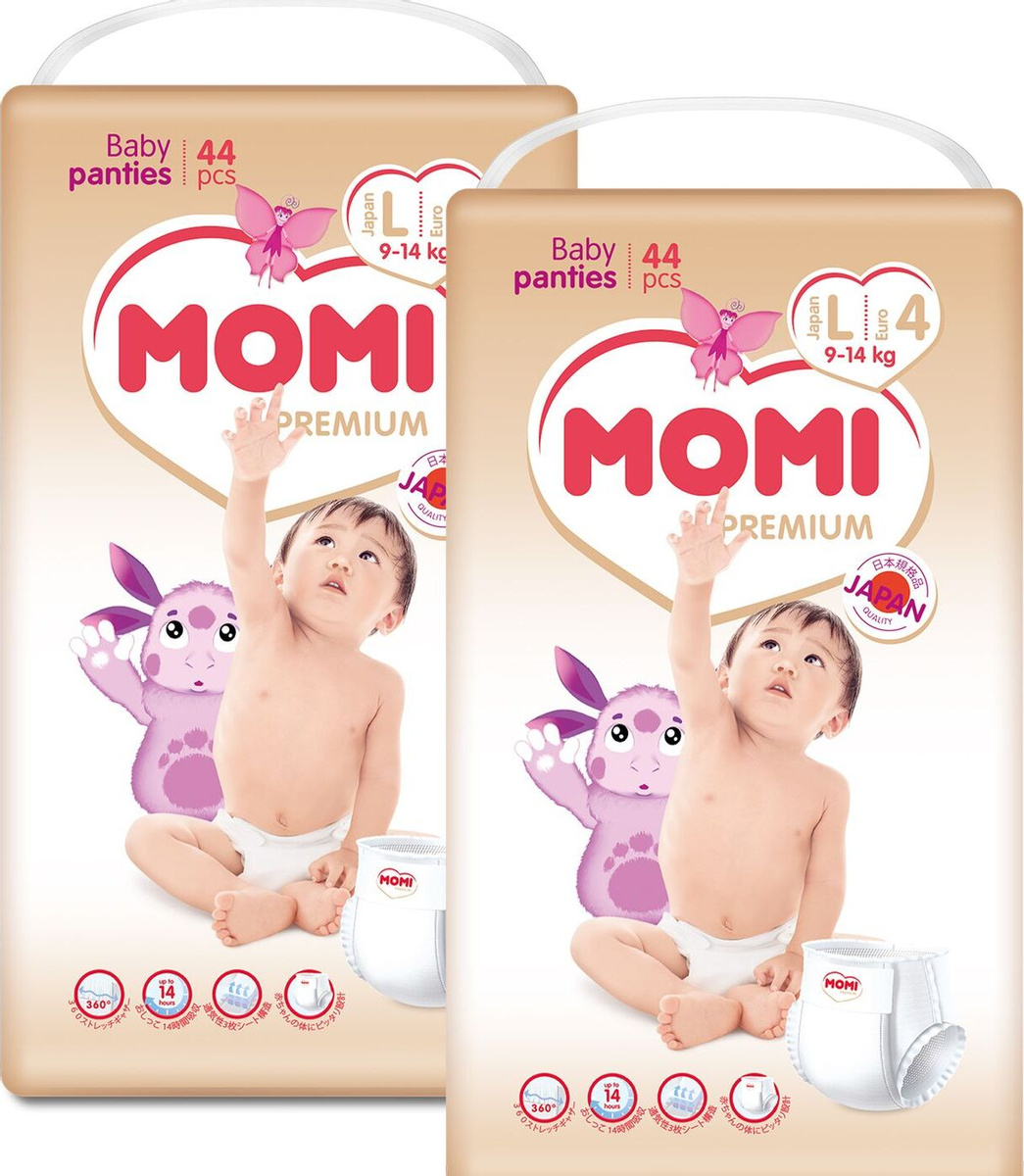 Подгузники-трусики Momi Premium, 9-14 кг, размер L, 44 шт х 2 упаковки