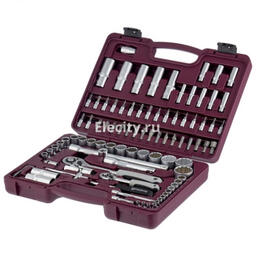 • Головки торцевые подробно 1/4": 4, 4.5, 5, 5.5, 6, 7, 8, 9, 10, 11, 12, 13, 14 мм; длинные 1/4": 6, 7, 8, 9, 10, 11, 12, 13 мм; с битами 1/4": SL4, SL5.5, SL6.5, H3, H4, H5, H6, T8, T10, T15, T20, T25, T30, PH1, PH2, PZ1, PZ2; трещотка 1/4"; вороток т-образный 1/4"; удлинитель 1/4": 50, 100 мм; карданный шарнир 1/4"; 1/2" (12-гр): 10, 11, 12, 13, 14, 15, 16, 17, 18, 19, 21, 22, 24, 27, 30, 32 мм; длинные 1/2" (12-гр): 14, 15, 17, 19, 22 мм; трещотка 1/2"; карданный шарнир 1/2"; свечные 1/2": 16, 21 мм; удлинитель 1/2": 125, 250 мм