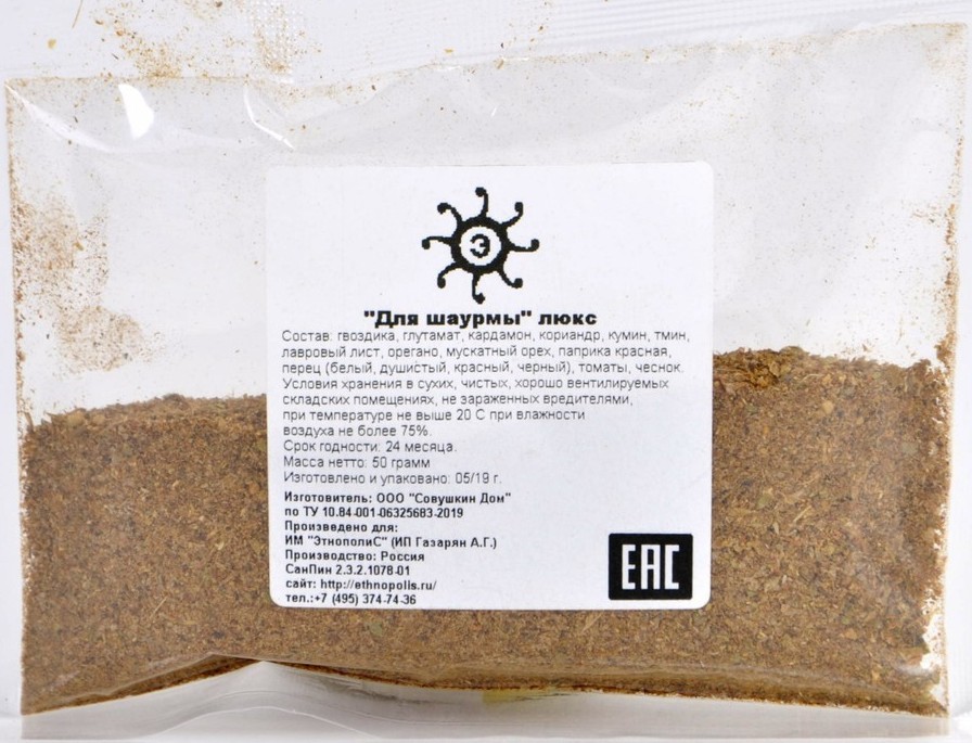 - Состав гвоздика, глутамат, кардамон, кориандр, кумин, тмин, лавровый лист, орегано, мускатный орех, паприка красная, перец (белый, душистый, красный, черный), томаты, чеснок