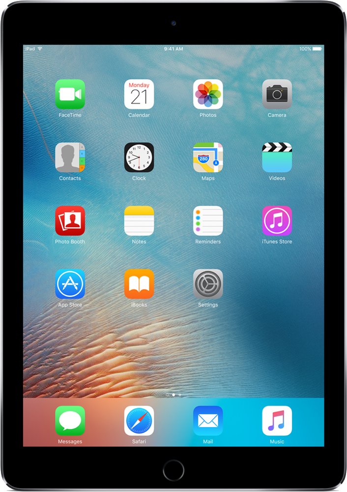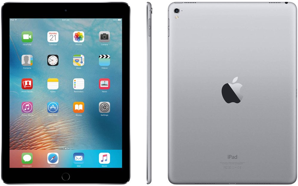 9.7 "; IPS; 2048x1536; Apple iOS; Apple A9X; 2 ядерный; ОЗУ 4 Гб; встроенная память 128 Гб; тыловая камера - 12 Мп; 4G (LTE), Wi-Fi, Bluetooth; вес 444 г.