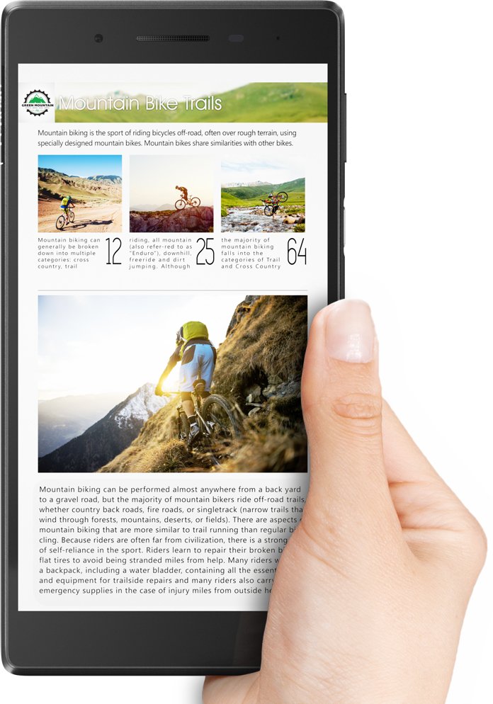 7 "; IPS; 1280x720; Android; MediaTek MT8735; 4 ядерный; ОЗУ 1 Гб; встроенная память 16 Гб; тыловая камера - 5 Мп; Bluetooth, Wi-Fi, 4G (LTE); вес 260 г.