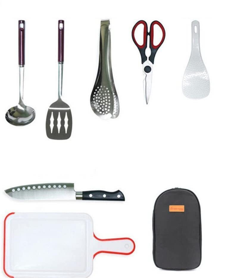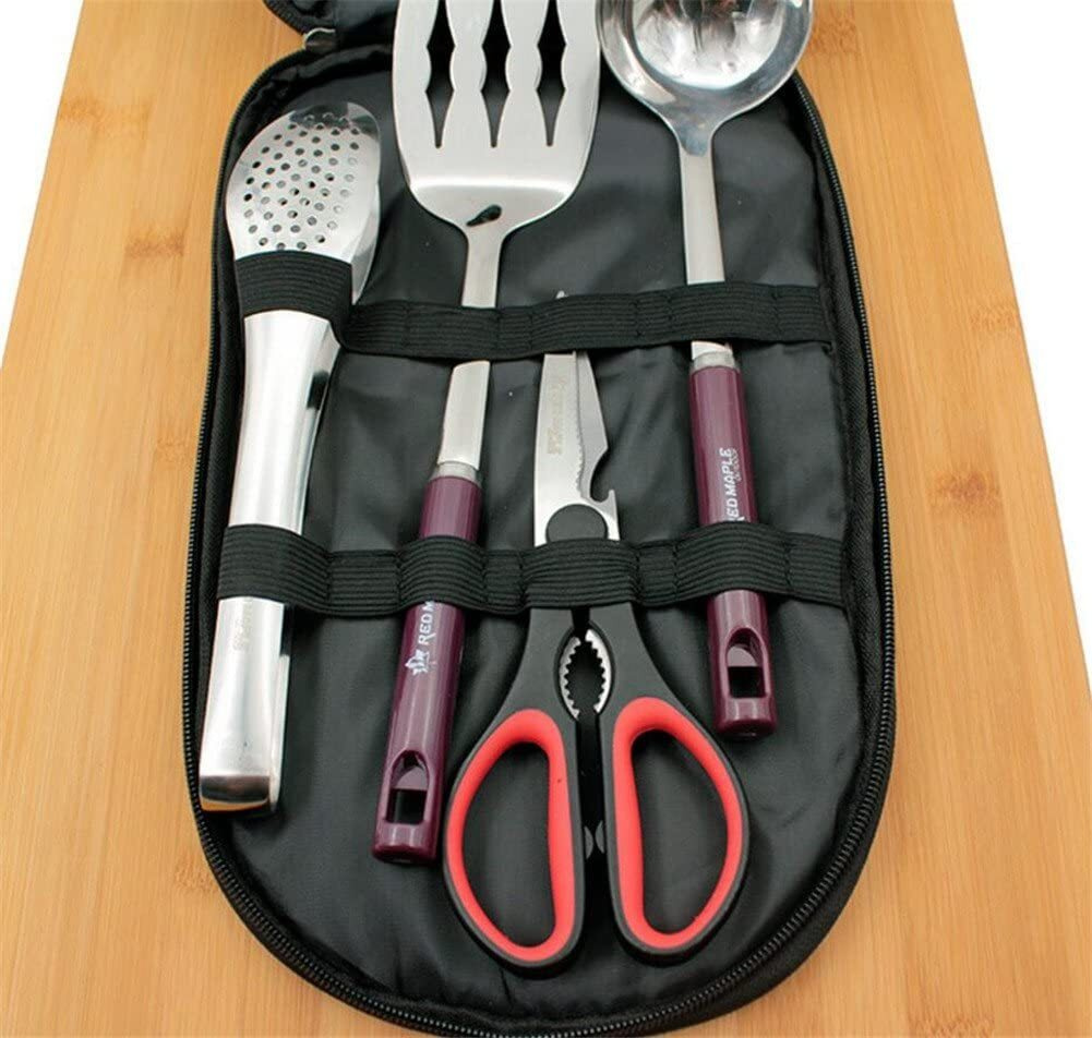 Походный набор кухонных приборов RED MAPLE - 8 предметов + удобный чехол для хранения
