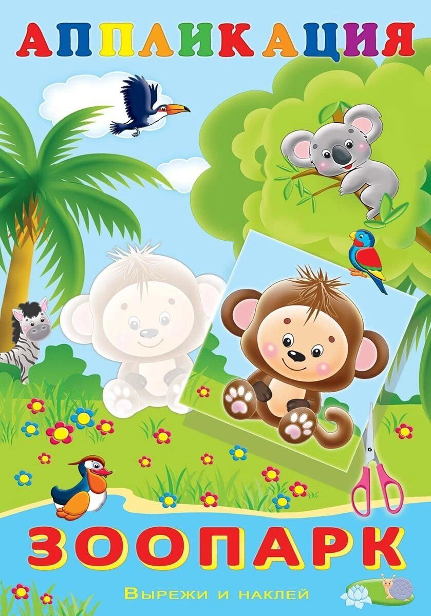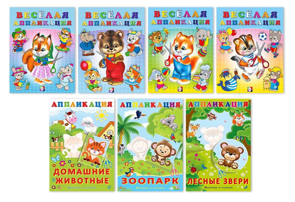 Веселая аппликация 1, 2, 3, 4. Зоопарк. Домашние животные. Лесные звери (комплект из 7 книг)