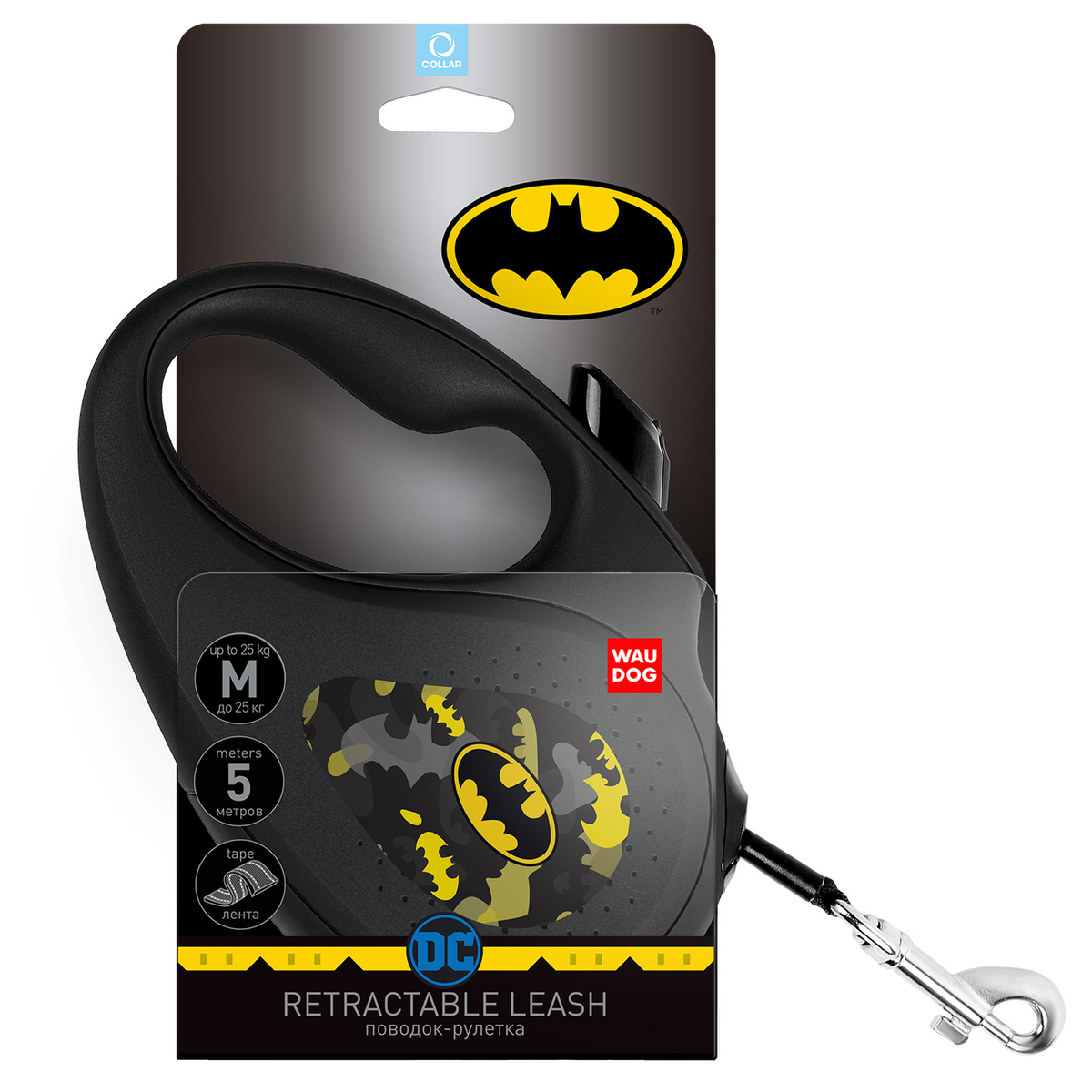 Поводок-рулетка для собак WAUDOG с рисунком "Бэтмен Узор", до 25 кг, 5 м