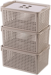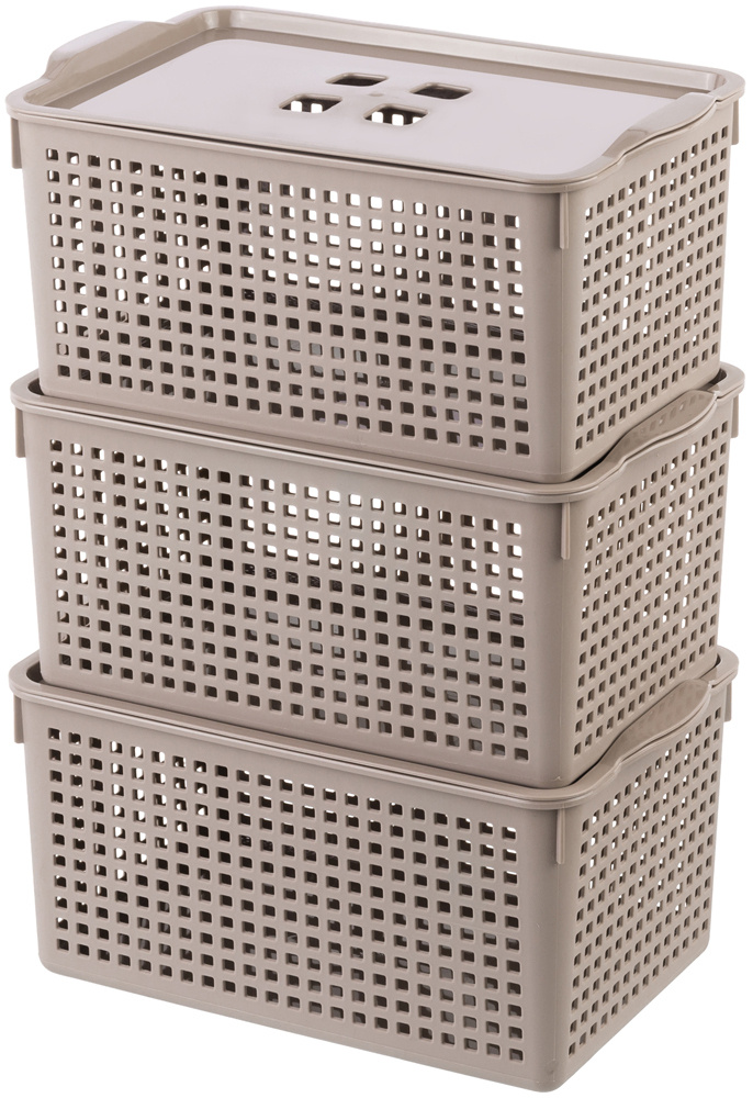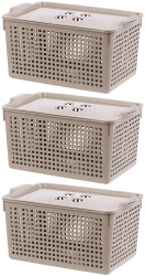Набор 3 корзинок с крышками 5,3 л 29,5х18,5х22 см EL Casa Лофт мокка