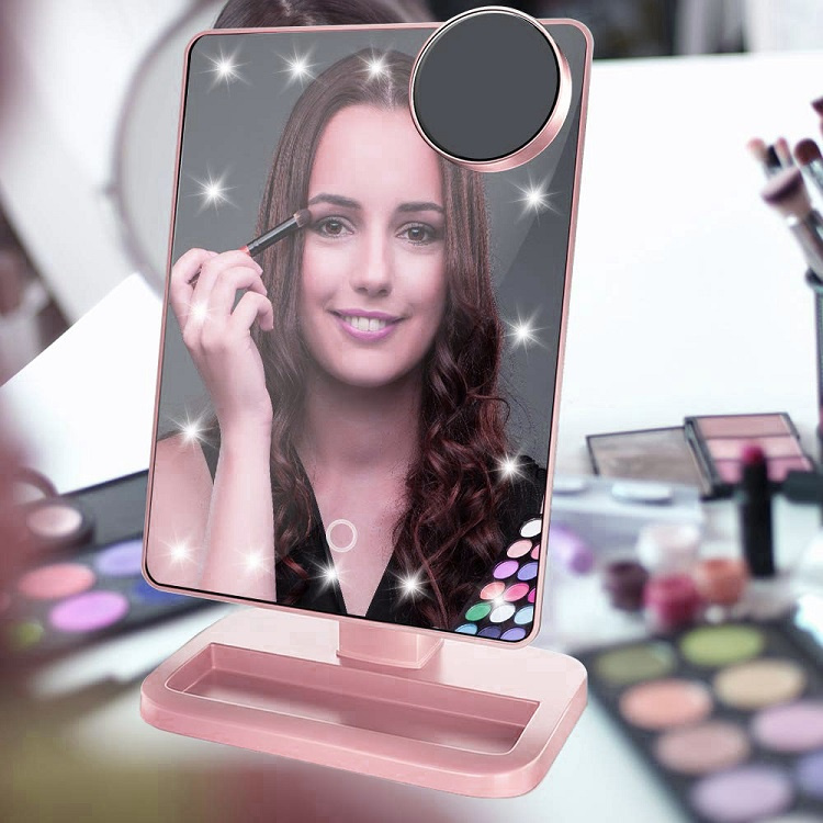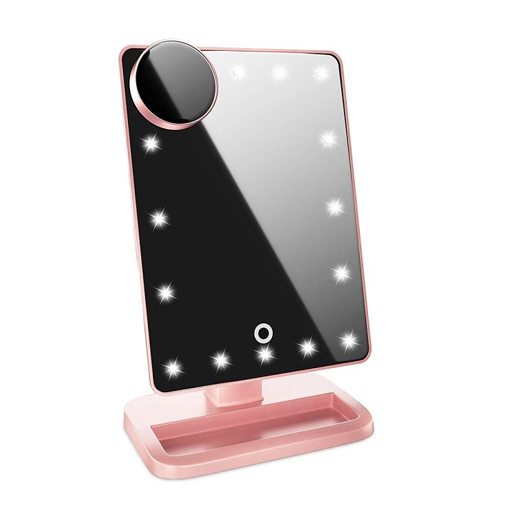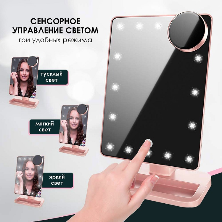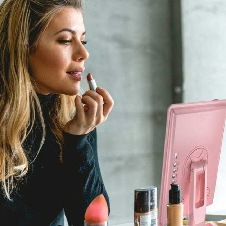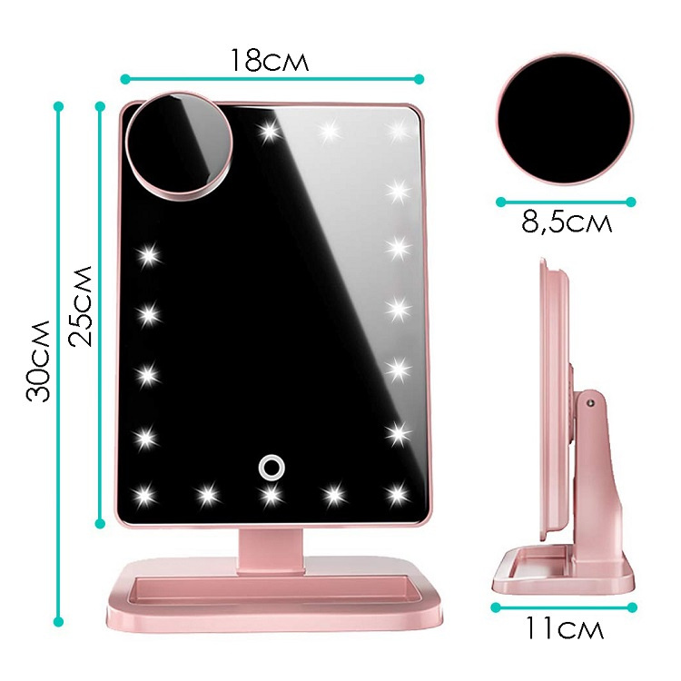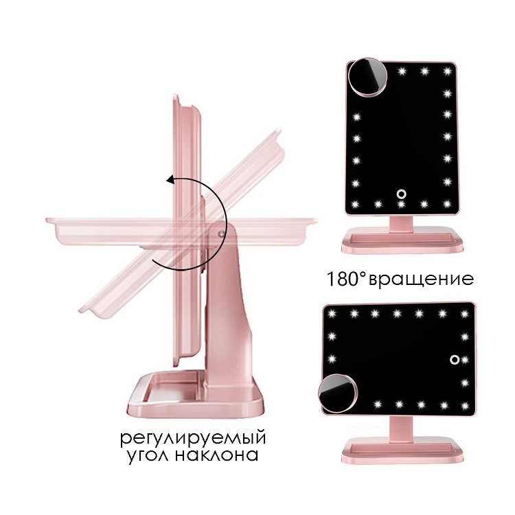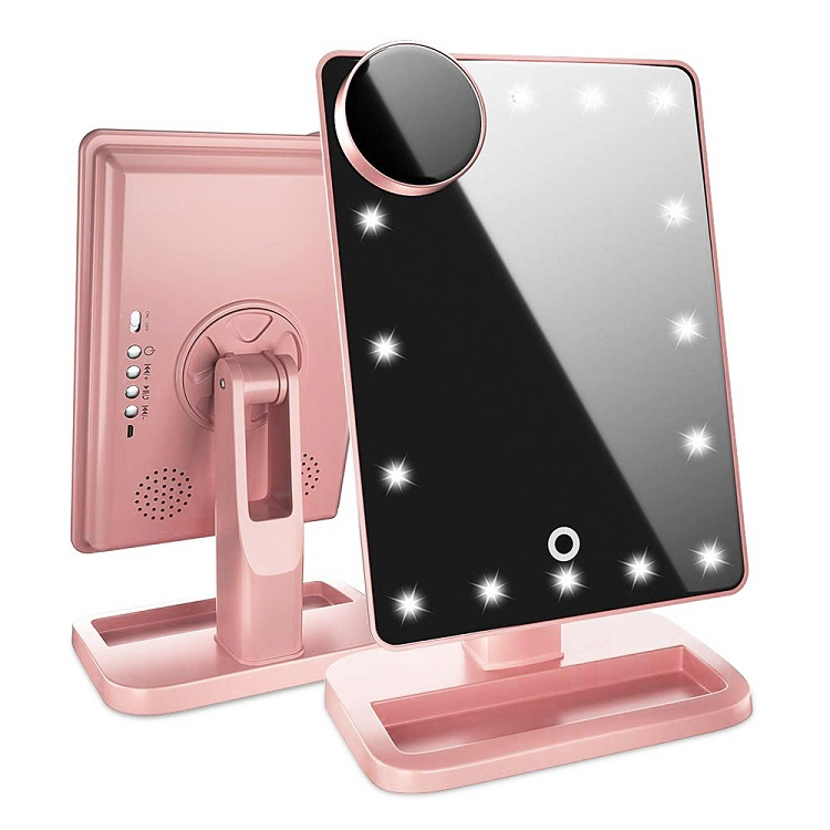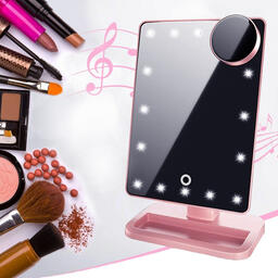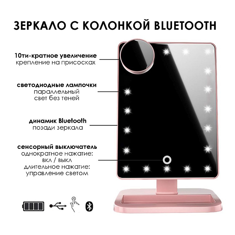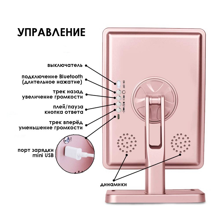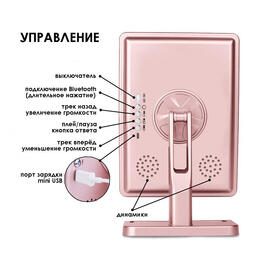 Зеркало с подсветкой и колонкой, розовое, 30х11х18 см