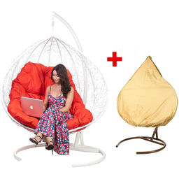 Кресло подвесное Bigarden "Gemeni Promo", белое, красная подушка