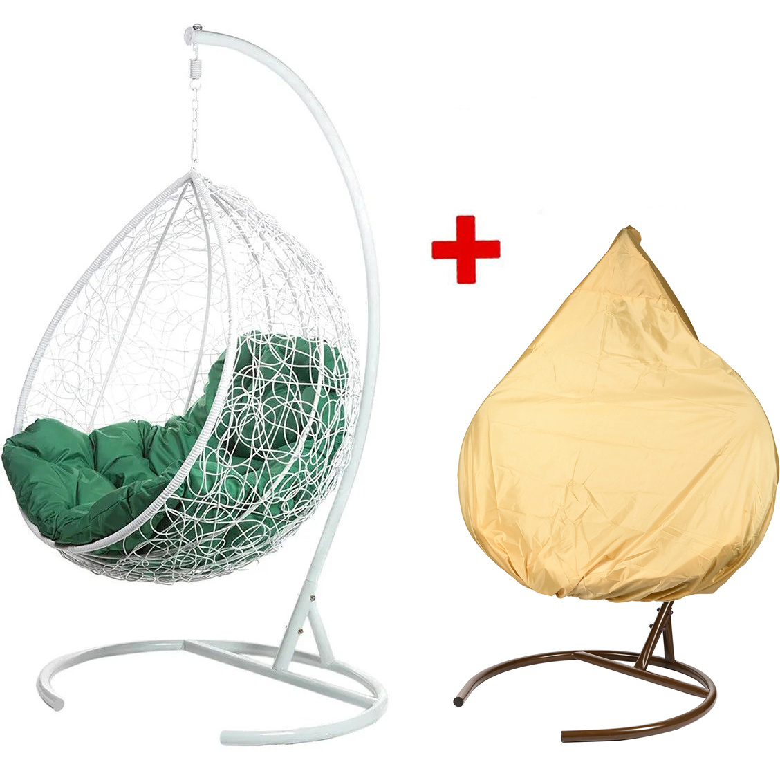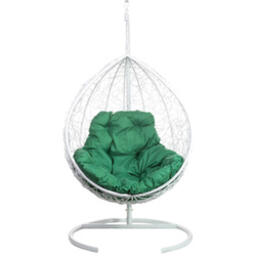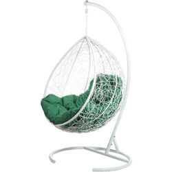 Кресло подвесное Bigarden "Tropica", белое, со стойкой, зеленая подушка