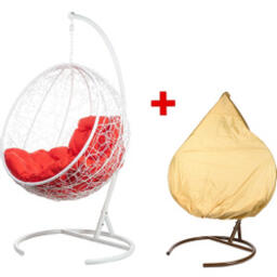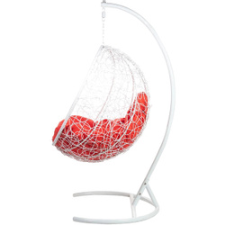 Кресло подвесное Bigarden "Kokos", белое, со стойкой, красная подушка