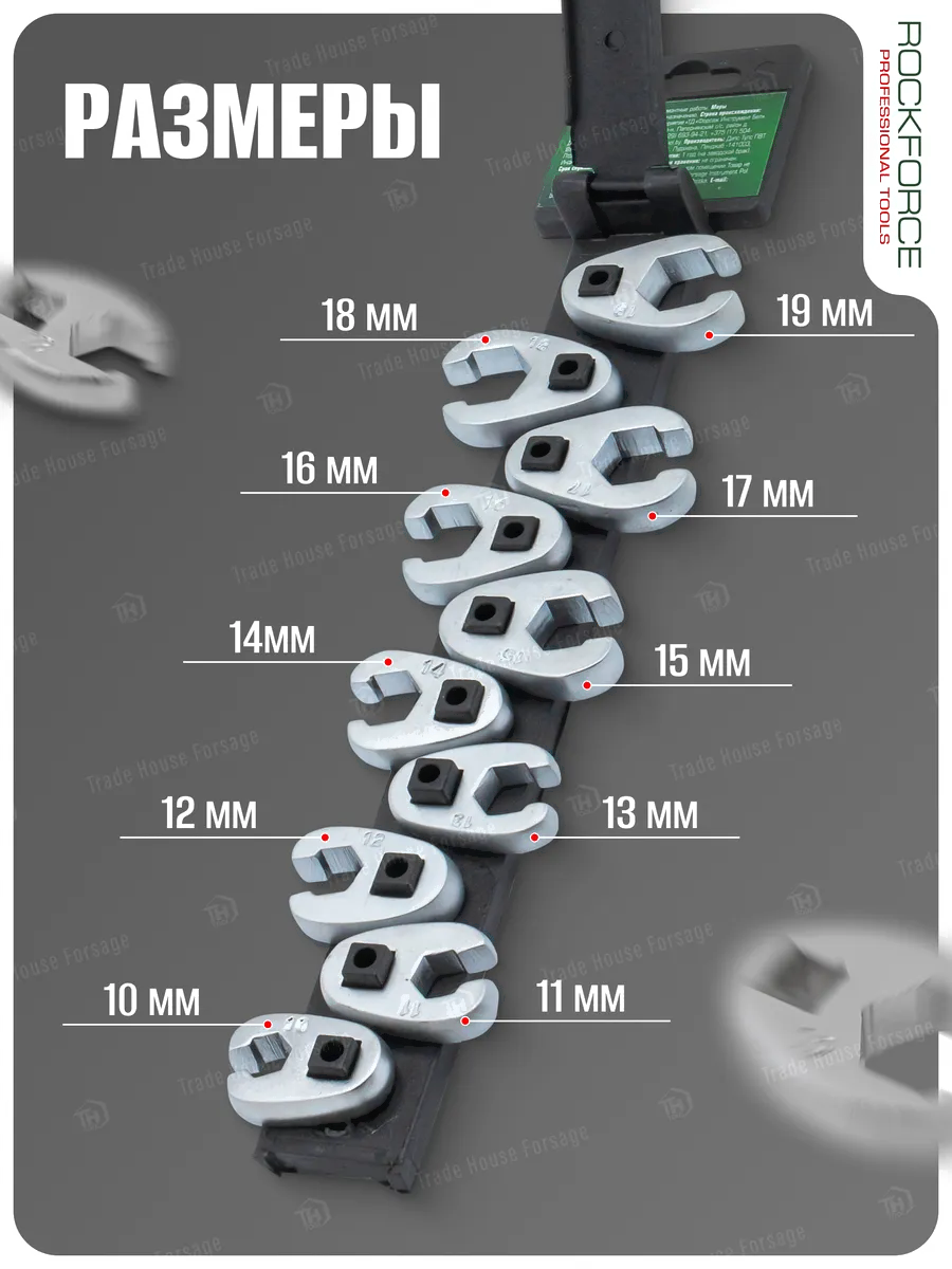 • Размер(ы) ключа (мм) 13, 14, 15, 17, 19, 10, 11, 12, 18, 16