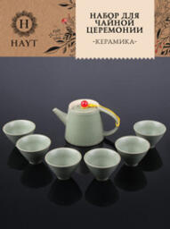 Сервиз чайный HAYT Таинственность, 7 предметов: чашка 80 мл, чайник 200 мл, цвет зеленый