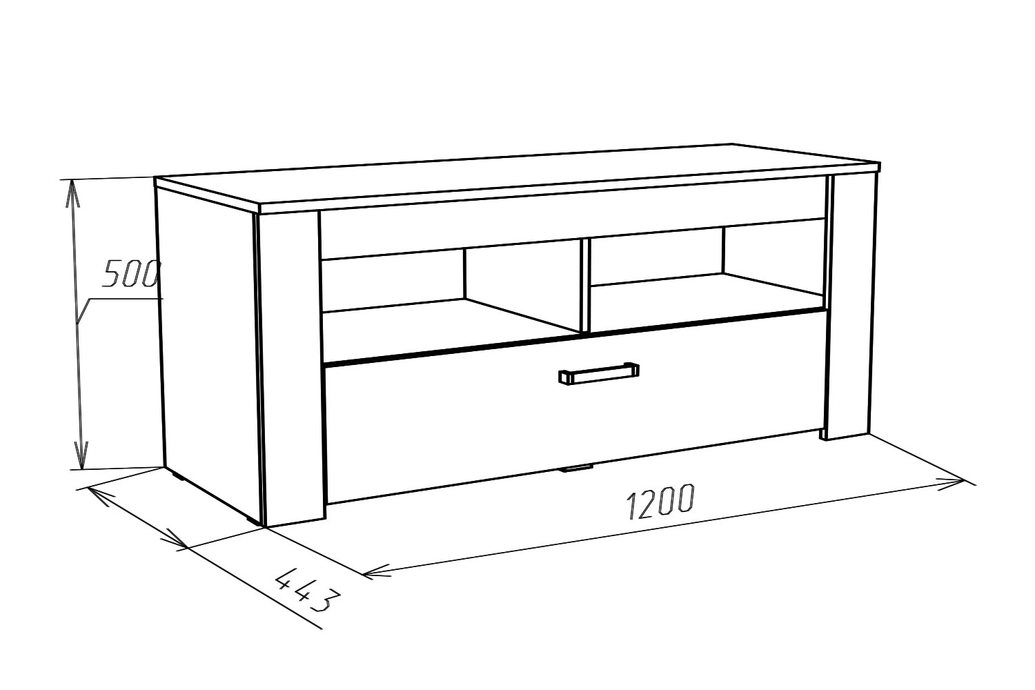 - Размеры (ШxГxВ), в сантиметрах 120х44,3х50
