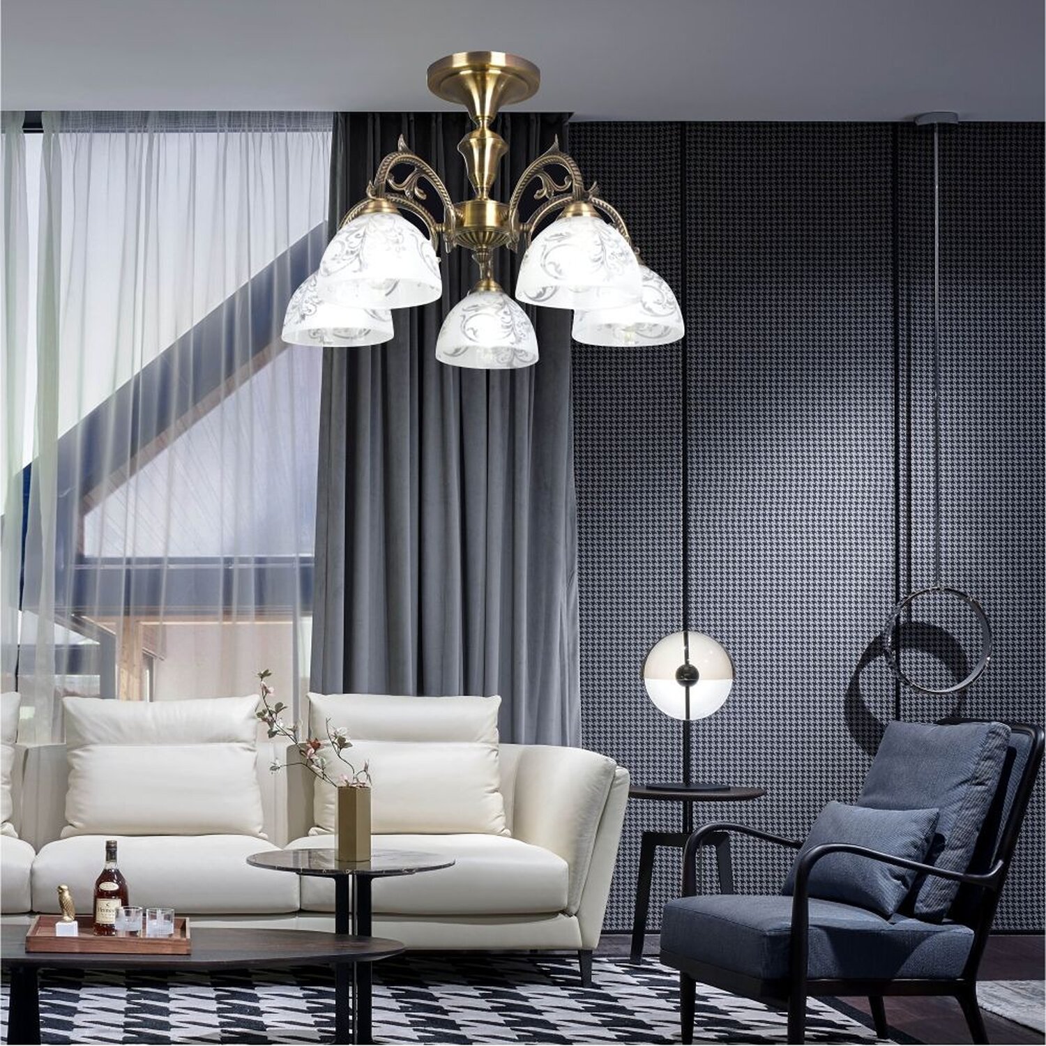 Артикул № 4578381 Декор в виде художественного литья, оригинальные плафоны с растительным орнаментом - люстра Leek LE062300-003 подчеркнет утонченность классического оформления, добавит элегантность современному интерьеру. Потолочный светильник имеет металлическое основание цвета бронзы, дополненное пятью плафонами из белого матового стекла. Абажуры декорированы глянцевыми узорами, что делает конструкцию более легкой и изящной. Источником света в данной модели служат лампы с цоколем Е27, которые приобретаются отдельно. Потолочная люстра Leek LE062300-003 - прекрасный вариант для гостиной и спальни в стиле арт-деко, модерн, эклектика, неоклассика и др. Компания Энергокомплект занимает лидирующие позиции на российском рынке светотехнической продукции. Ассортимент включает товары для дома, офиса, общественных и промышленных объектов.
