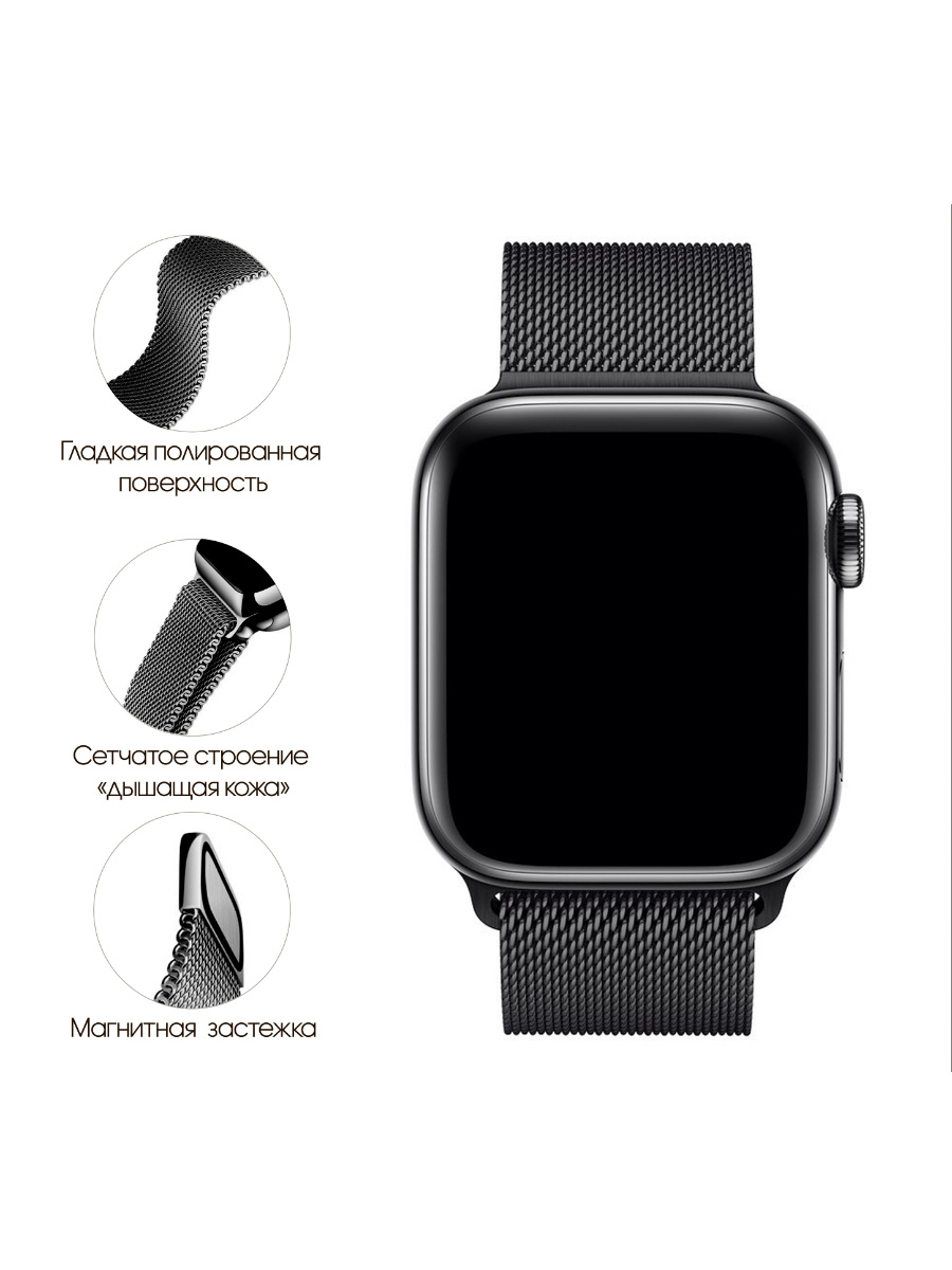 Металлический ремешок для Apple Watch series 1-5, 42 / 44 mm Миланская петля, Черный