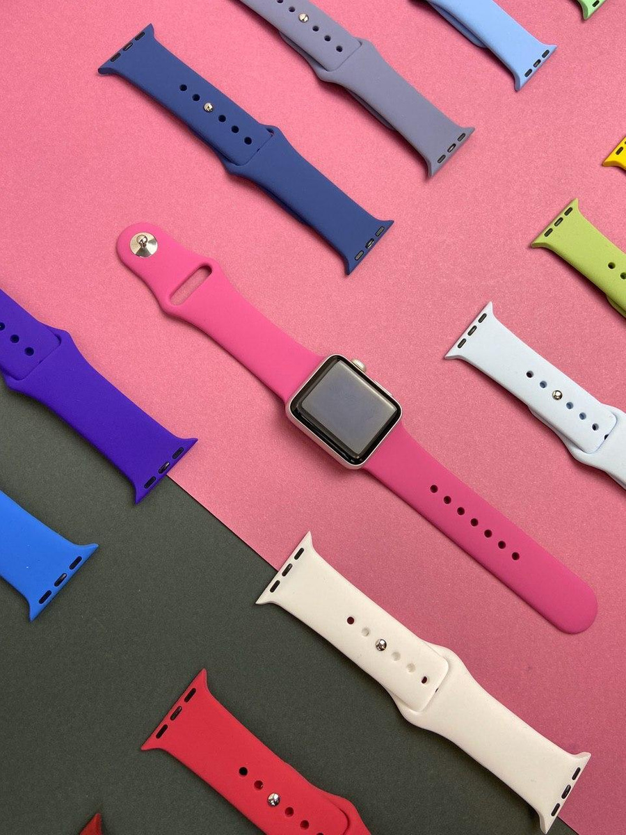 Cпортивный ремешок для Apple Watch 1-5 series Sport 38 / 40 mm, Силиконовый ремешок, (Красная роза)