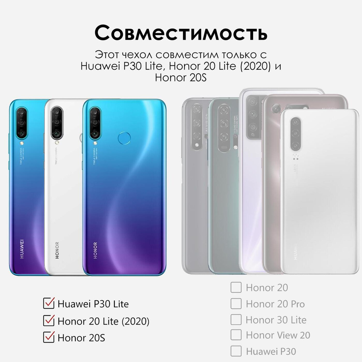 - Модель устройства Honor 20 Lite, Huawei P30 Lite, Honor 20S