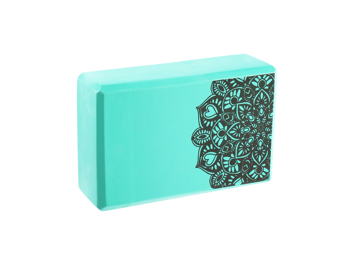 Блок для йоги, URM, кирпичик, зеленый, с узором, 22.7x15x7.3