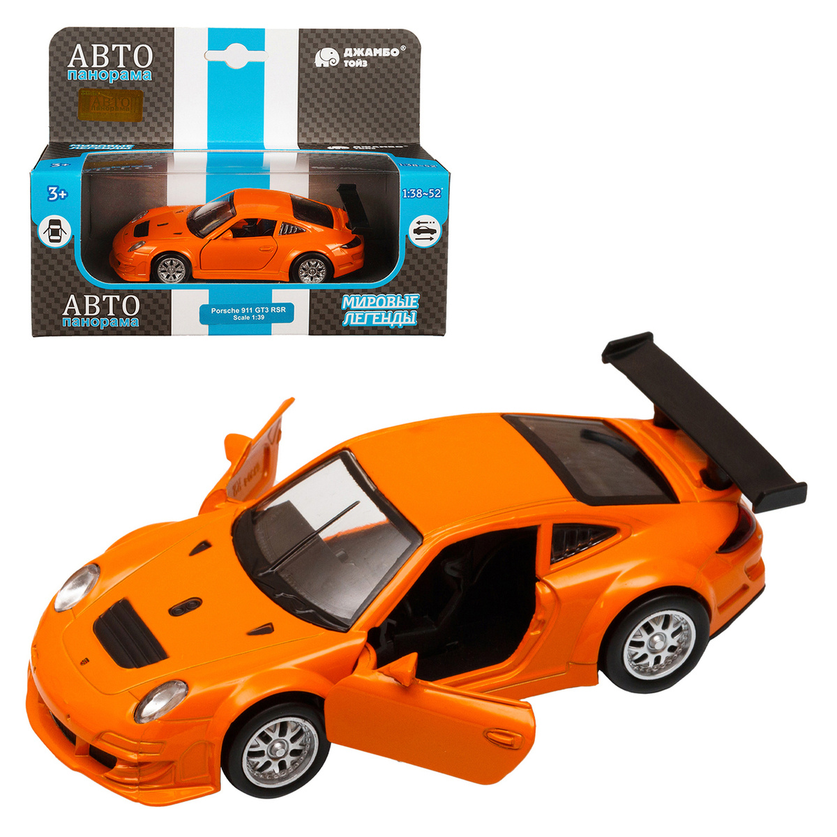 Машинка металлическая, инерционная, Автопанорама, коллекционная модель Porsche 911 GT3 RSR, 1:39, цвет оранжевый, открываются двери