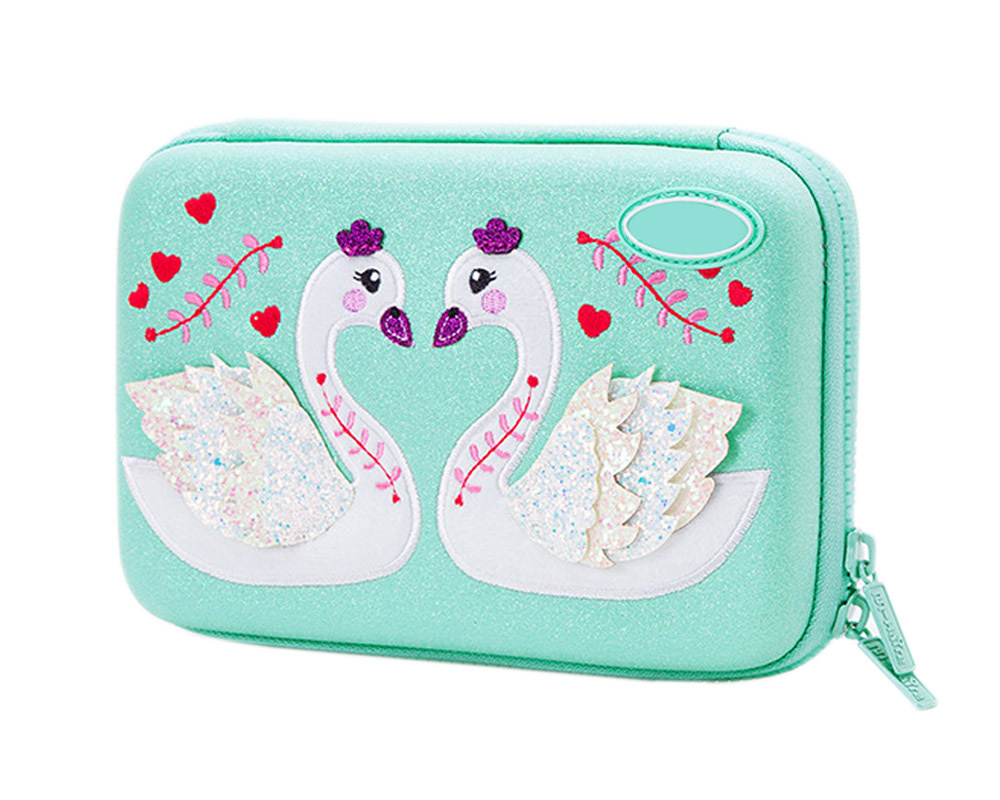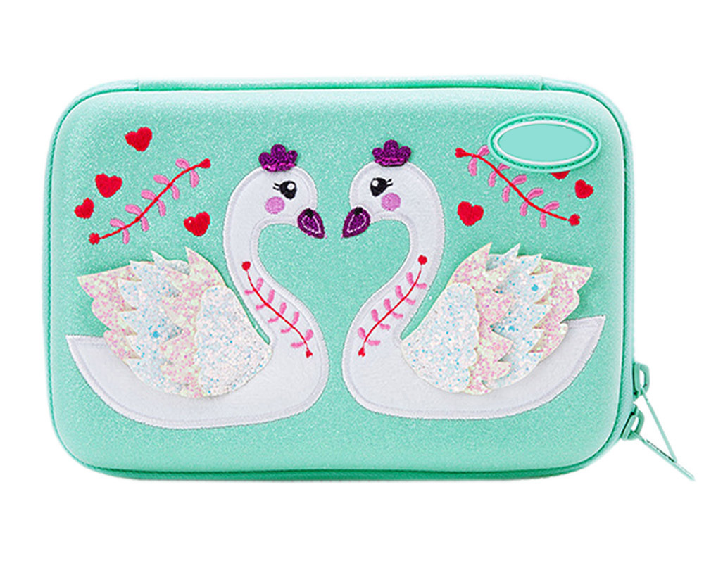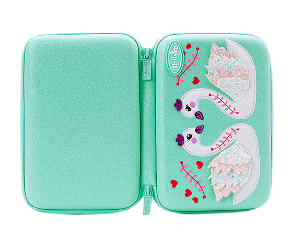 лебедь пенал с молнией, зеленый, 21x15x5cm