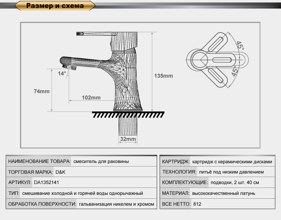 Смеситель D&K Paulinus Rhein DA1352141 для раковины