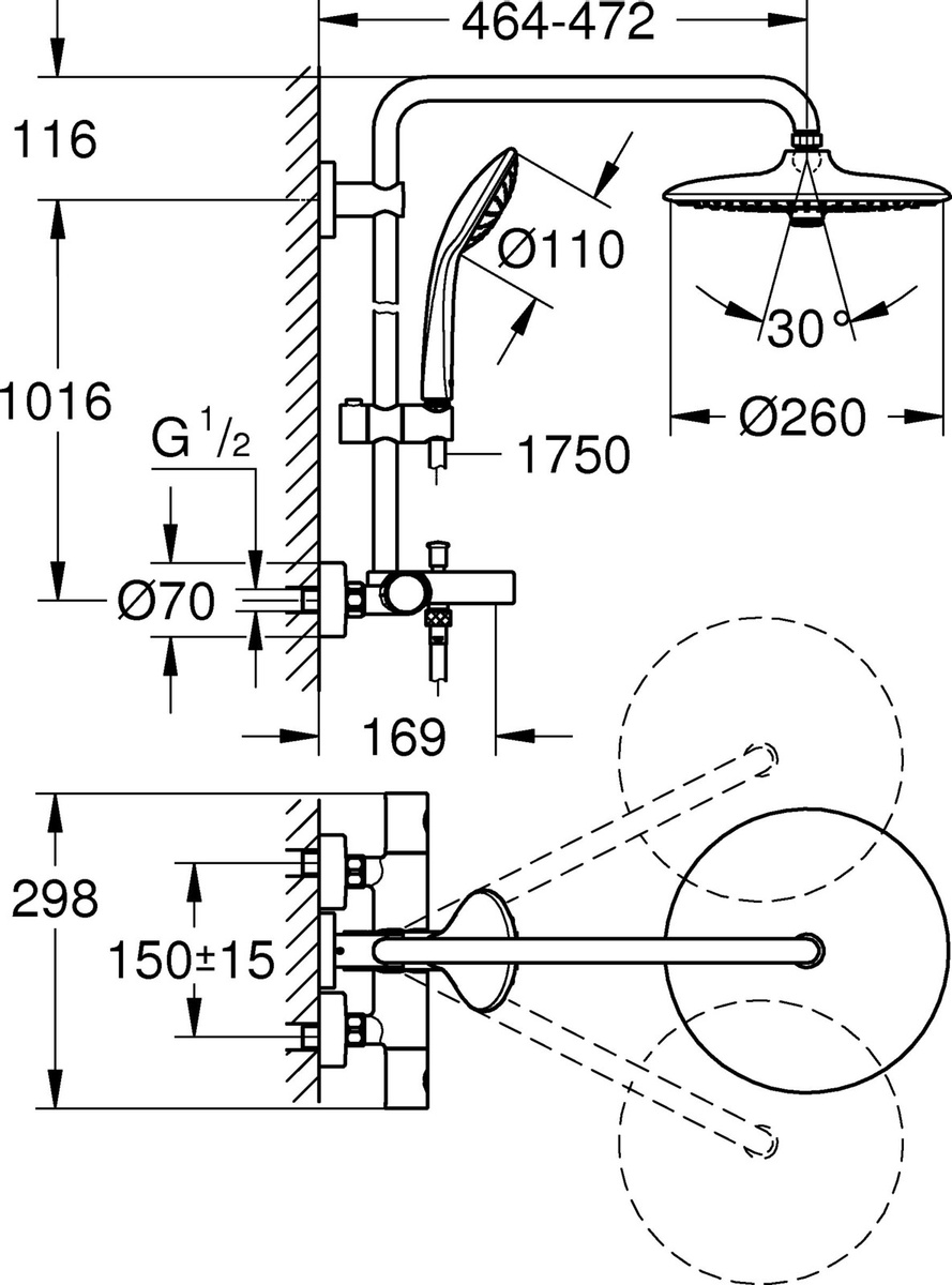 Cистема душевая Grohe "Euphoria Concetto", с термостатом. 26114001