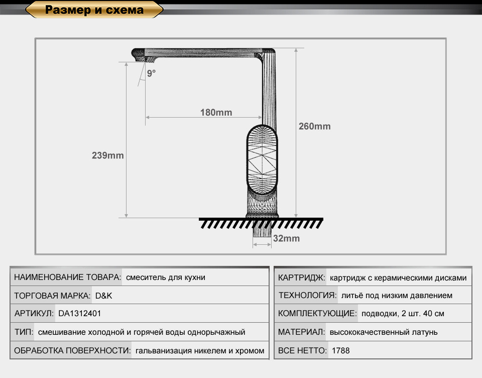 Смеситель D&K Speyer Rhein DA1312401 для кухонной мойки