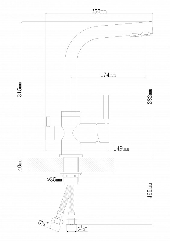 - Высота излива, мм 282