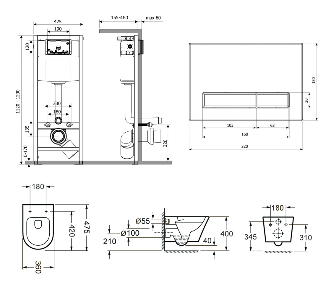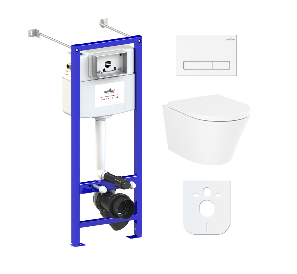 Комплект 6 в 1 Lavinia Boho Biore Compacto Rimless, безободковый унитаз, сиденье микролифт, инсталляция, крепление, клавиша смыва, шумоизоляция