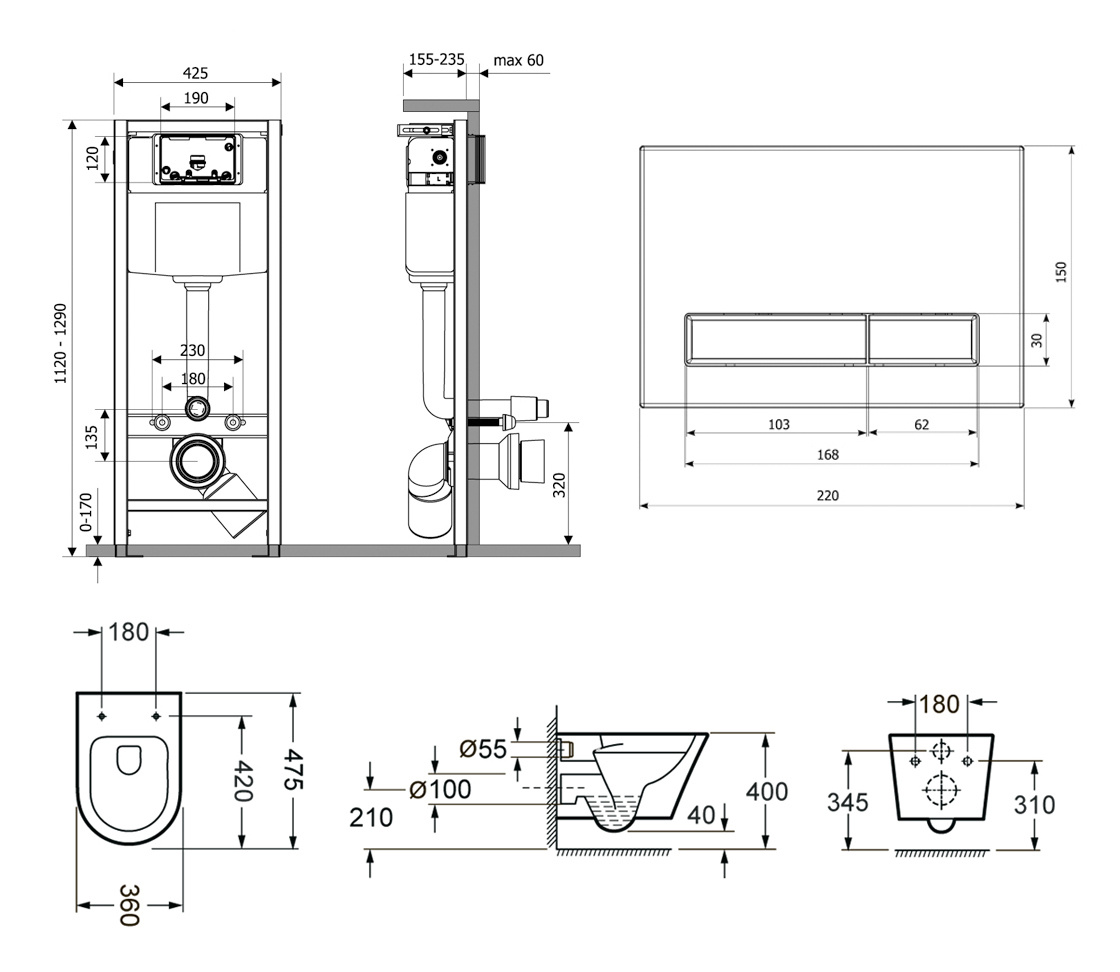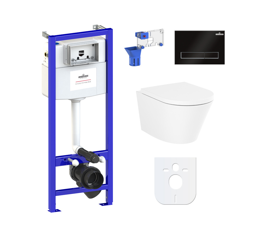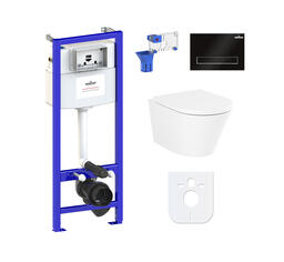 Комплект 7 в 1 Lavinia Boho Biore Compacto Rimless, безободковый унитаз, сиденье микролифт, инсталляция, крепление, клавиша смыва, шумоизоляция, диспенсер