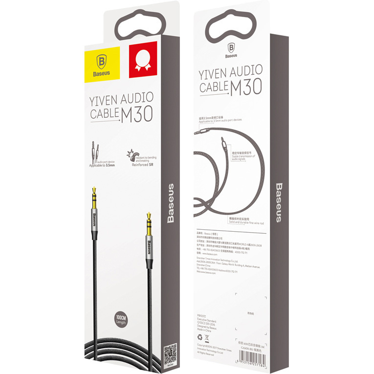 Кабель AUX 3.5мм - 3.5мм 1м Baseus Yiven Audio Черный/Серебристый