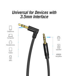 Кабель Vention аудио Jack 3,5 mm M/Jack 3,5 mm M угол 90 - 1.5м Черный BAKBG-T