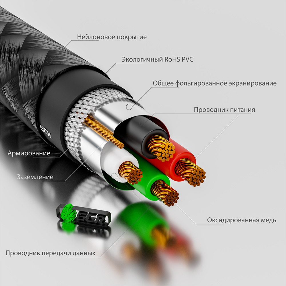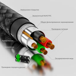 • Конструктивные особенности Двойное экранирование, Оплетка, Поддержка Quick Charge 3.0