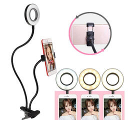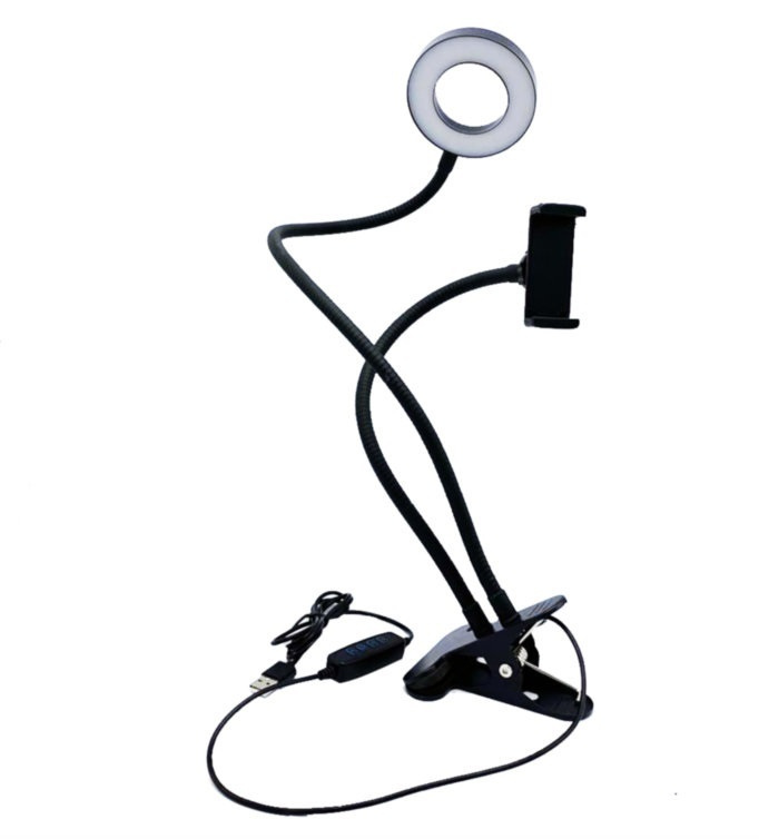 Настольная кольцевая LED лампа с гибким держателем на прищепке