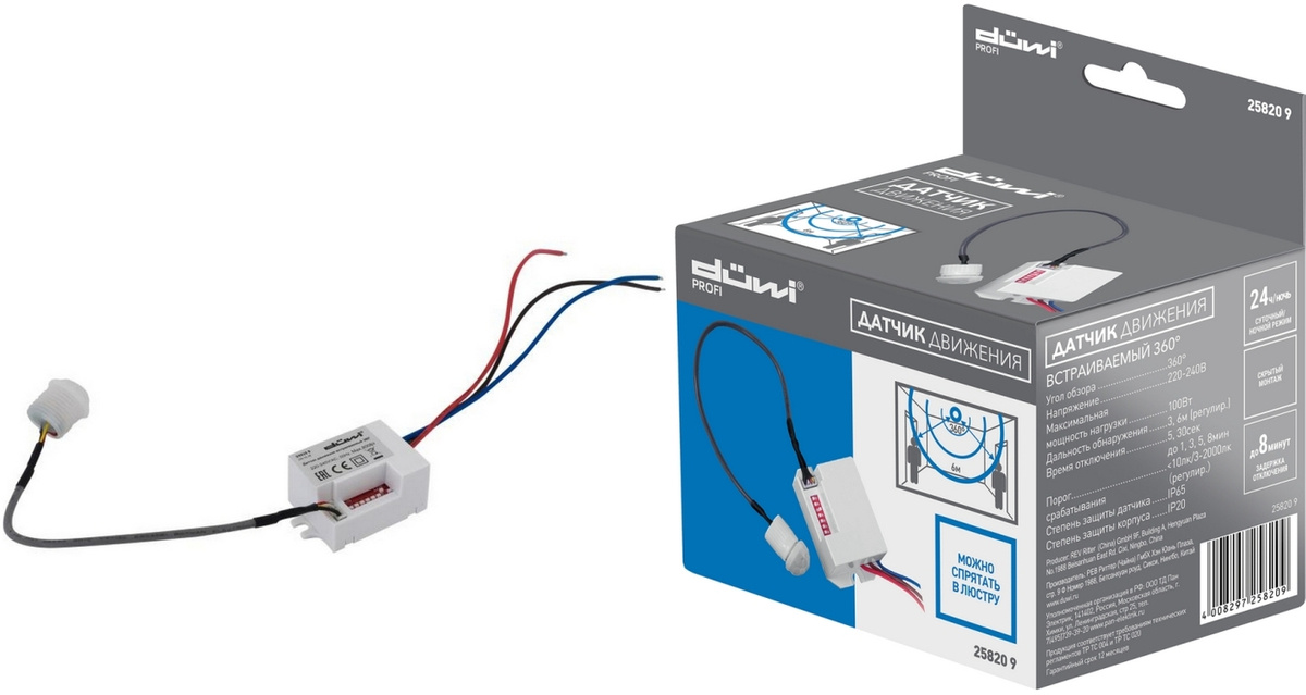 Датчик движения DDV-03 выносной Невидимка 360 800Вт 5-480с 6м 10/2000Лк белый