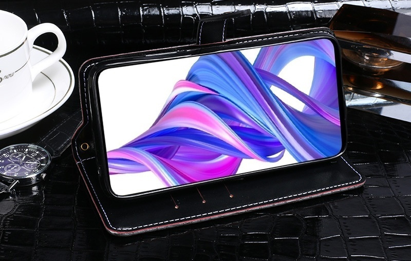 Чехол-книжка MyPads для ZTE Blade A5 (2019) с фактурной прошивкой рельефа кожи крокодила с застежкой и визитницей синий