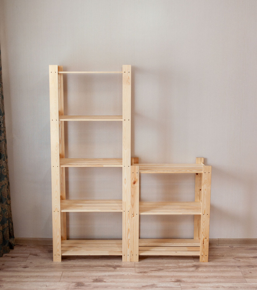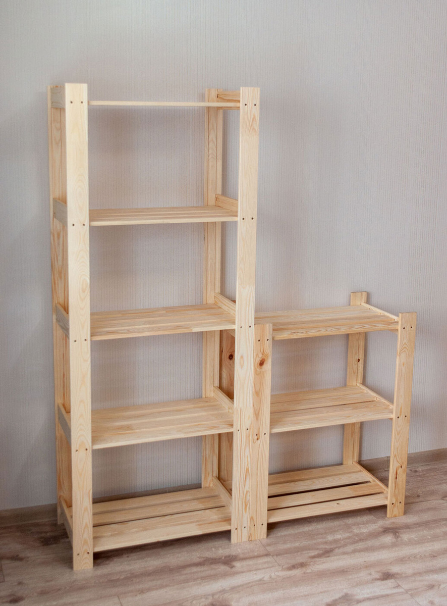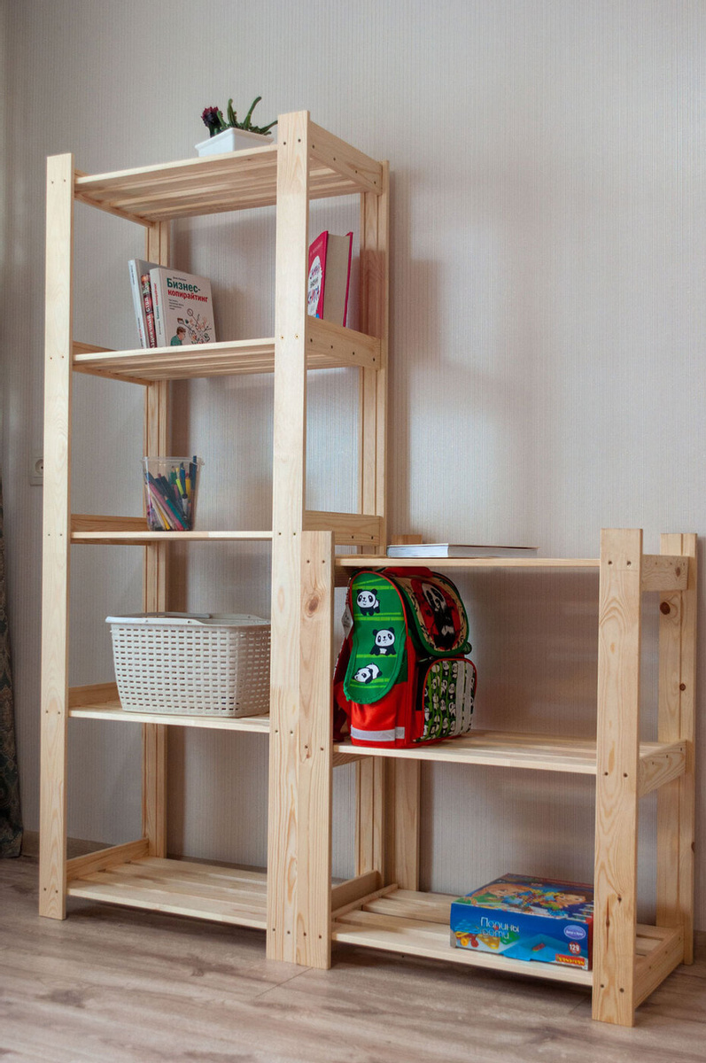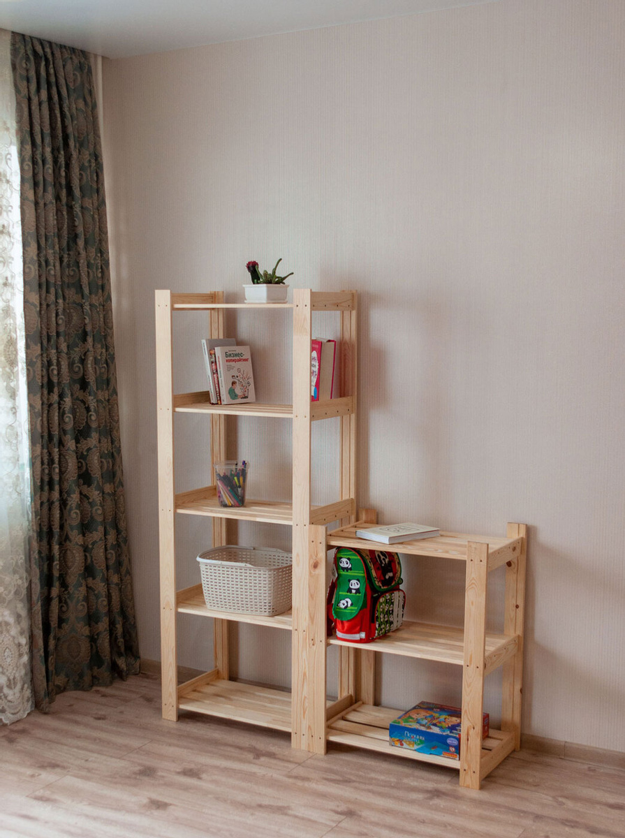 Комплект мебели, Стеллаж деревянный, ДЕЛЬТА, 159*63*37,4см + Этажерка ФИТА-3, 80*63*37,4см, Чудо-дерево, хвоя