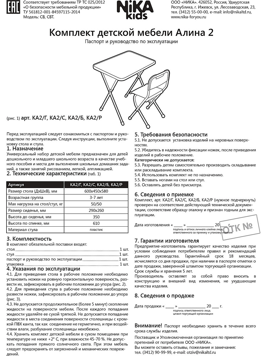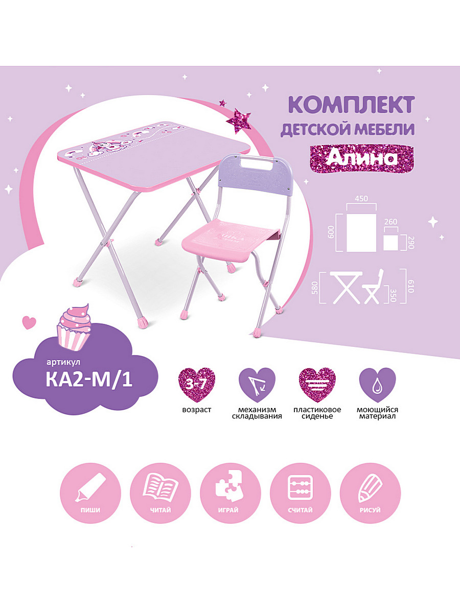 Комплект детской складной мебели со столом и стулом от 3 до 7 лет