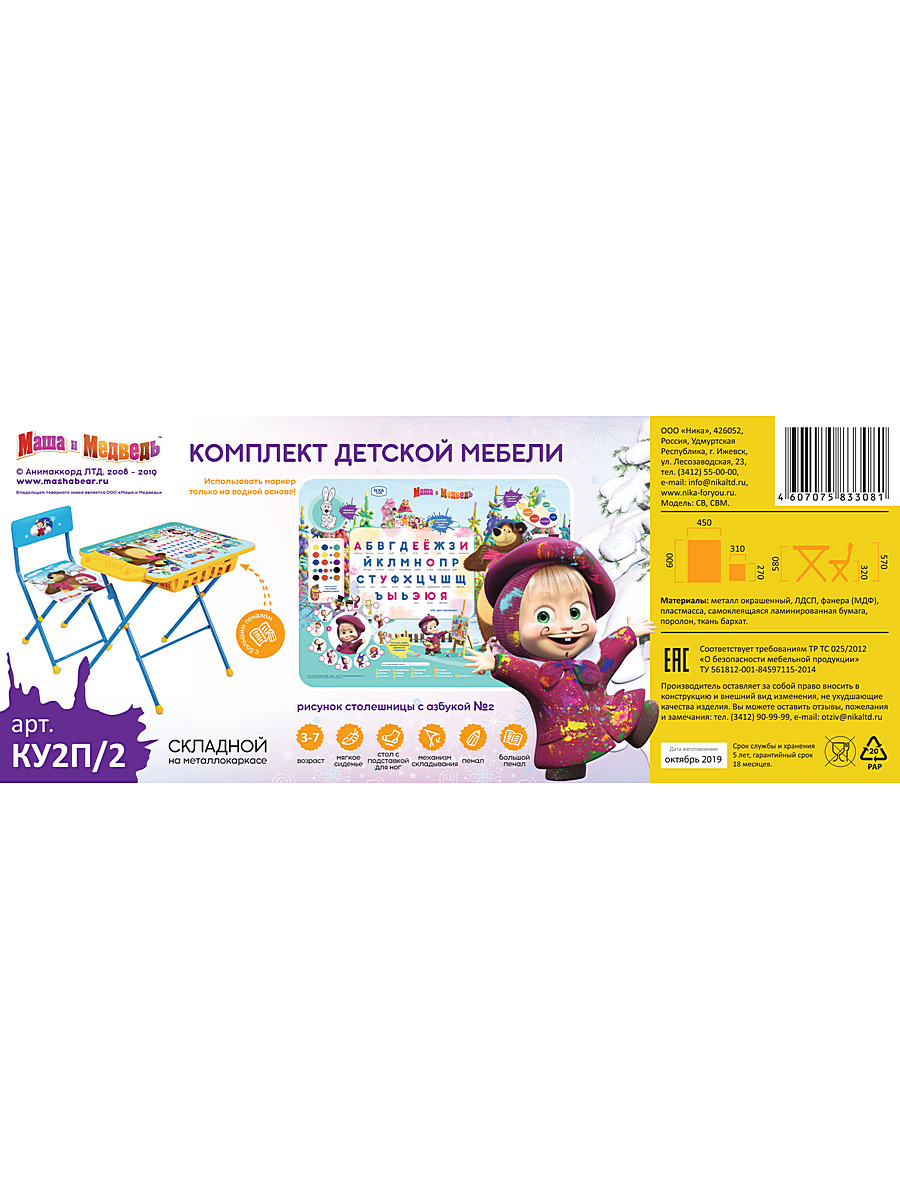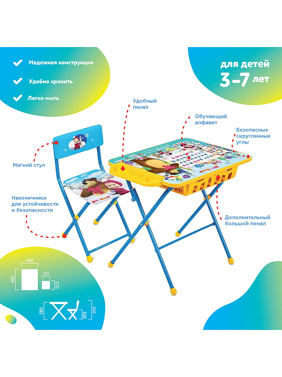 Комплект детской складной мебели со столом и стулом с мягким сиденьем от 3 до 7 лет