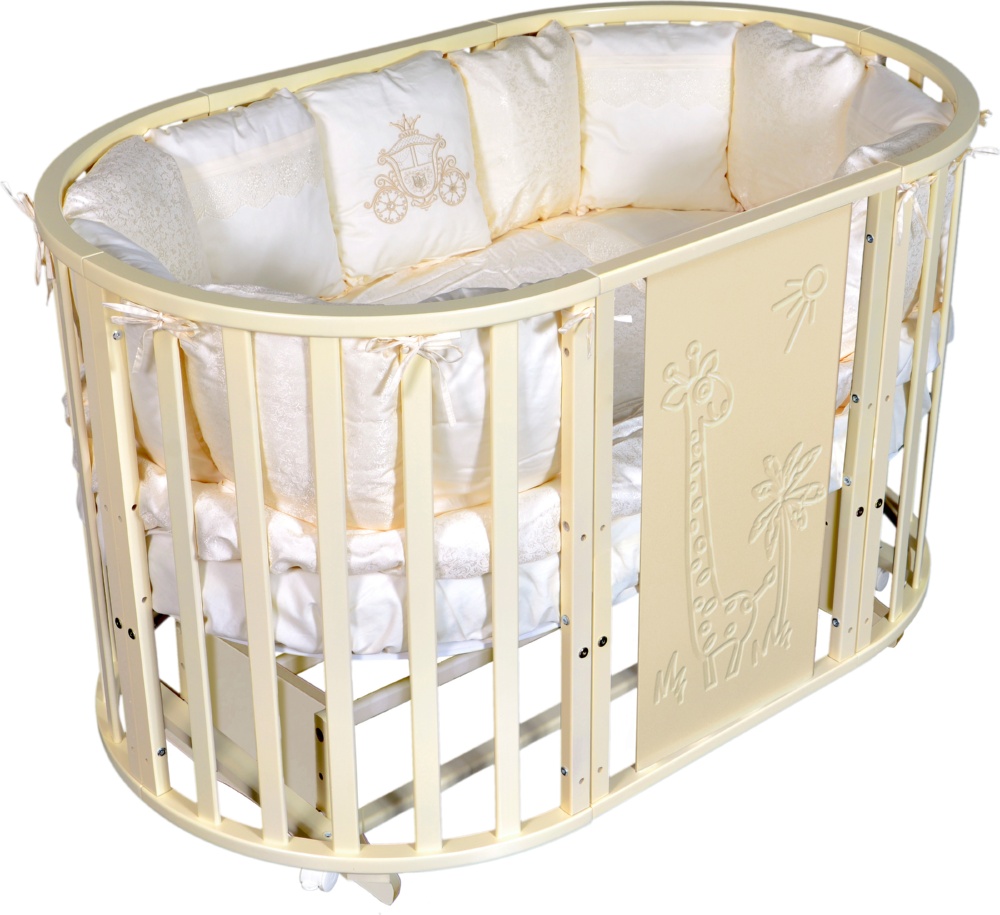 • Варианты трансформации Стол; Диванчик; Манеж; Овальная кроватка; Пеленальный столик; Круглая колыбелька