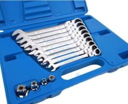 - Комплектация - 9 ключей размером 8, 10, 12, 13, 14, 16, 17, 18, 19 мм; - переходник для трещоточных ключей 10 мм для вставок 1/4" KING TONY 373202H; - переходник для трещоточных ключей 10 мм для головок 1/4" KING TONY 373202R; - переходник для трещоточных ключей 13 мм для головок 3/8" KING TONY 373203R; - переходник для трещоточных ключей 19 мм для головок 1/2" KING TONY 373204R; - кейс
