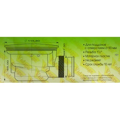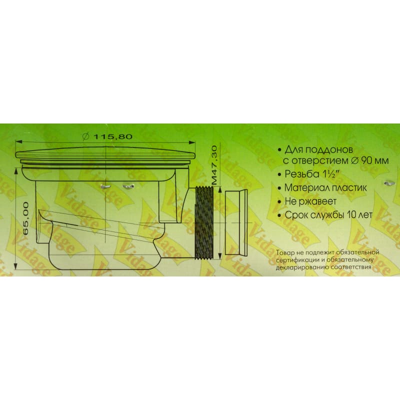 Сифон для душевого поддона Vidage с выпуском d 90 мм